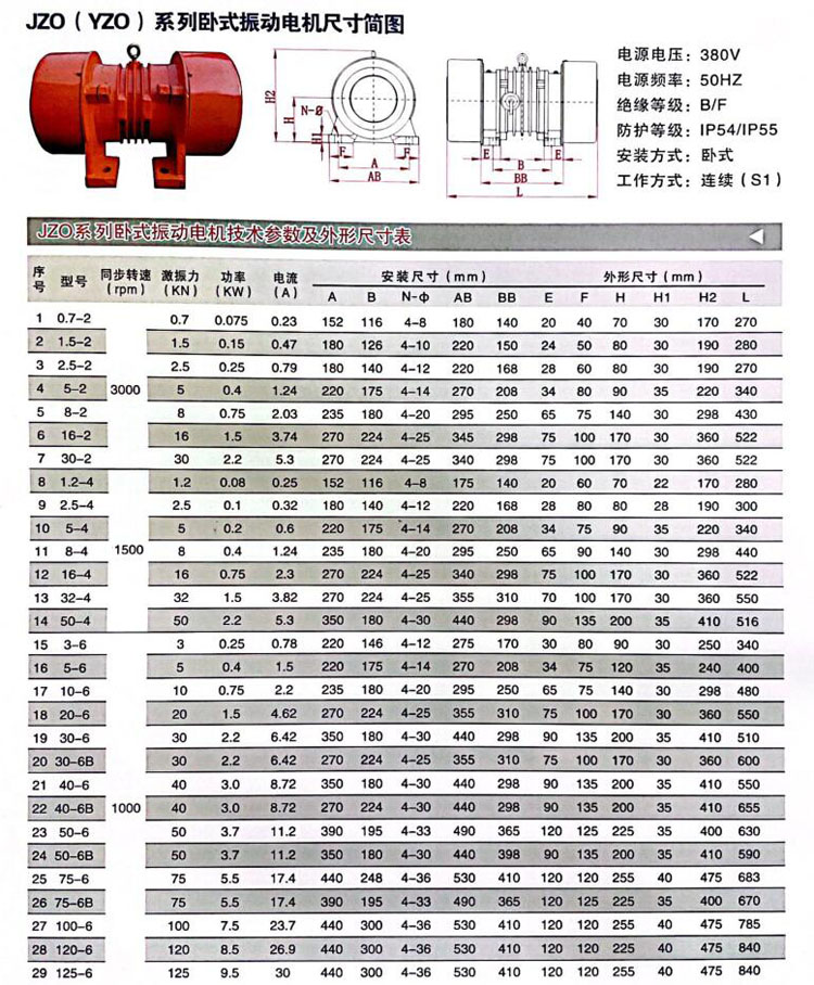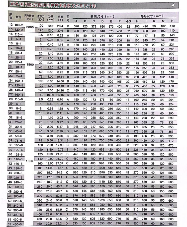3、據(jù)適用設備選購,振動篩、給料機和振實臺等設備,計算好電機振次和雙振幅選擇二級、四級、六級電機。
