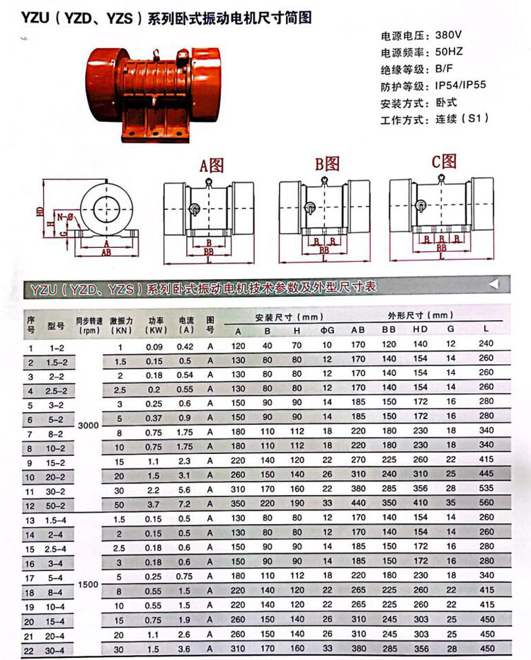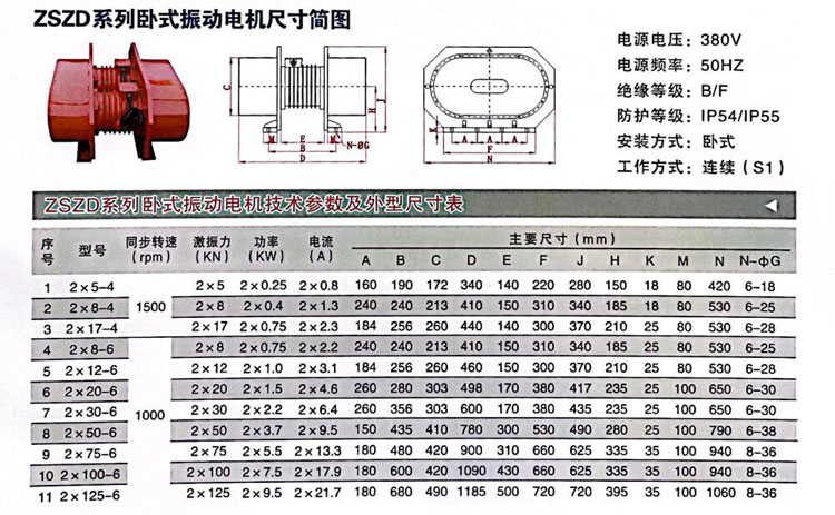 3、據(jù)適用設(shè)備選購,振動(dòng)篩、給料機(jī)和振實(shí)臺(tái)等設(shè)備,計(jì)算好電機(jī)振次和雙振幅選擇二級、四級、六級電機(jī)。